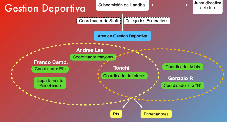 A continuación compartimos el diagrama de quienes llevamos adelante la gestión de Handball en esta hermosa Institución